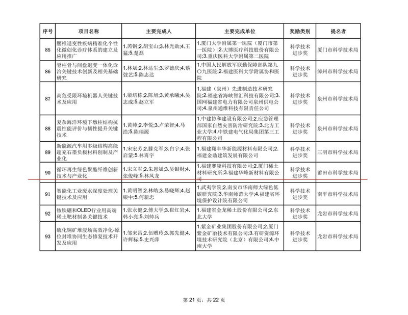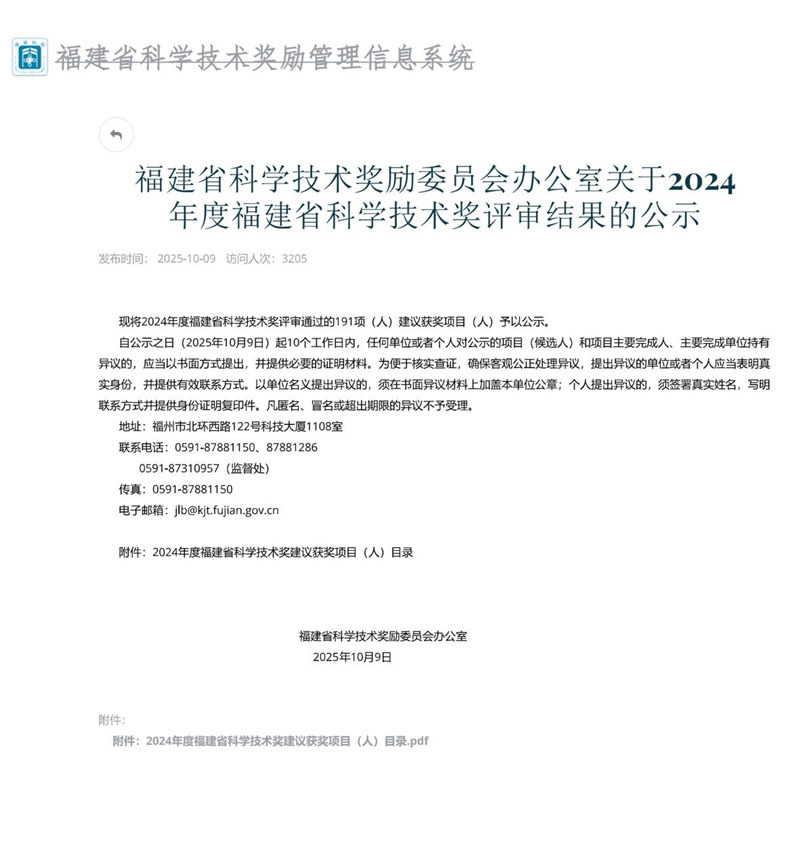 2025年10月,福建省科学技术奖励委员会办公室公布2024年度福建省科学技术奖评审结果名单,福建省运动鞋服面料重点实验室参与的“循环再生绿色聚酯纤维创新技术与产业化”项目荣获福建省科学技术进步奖三等奖。