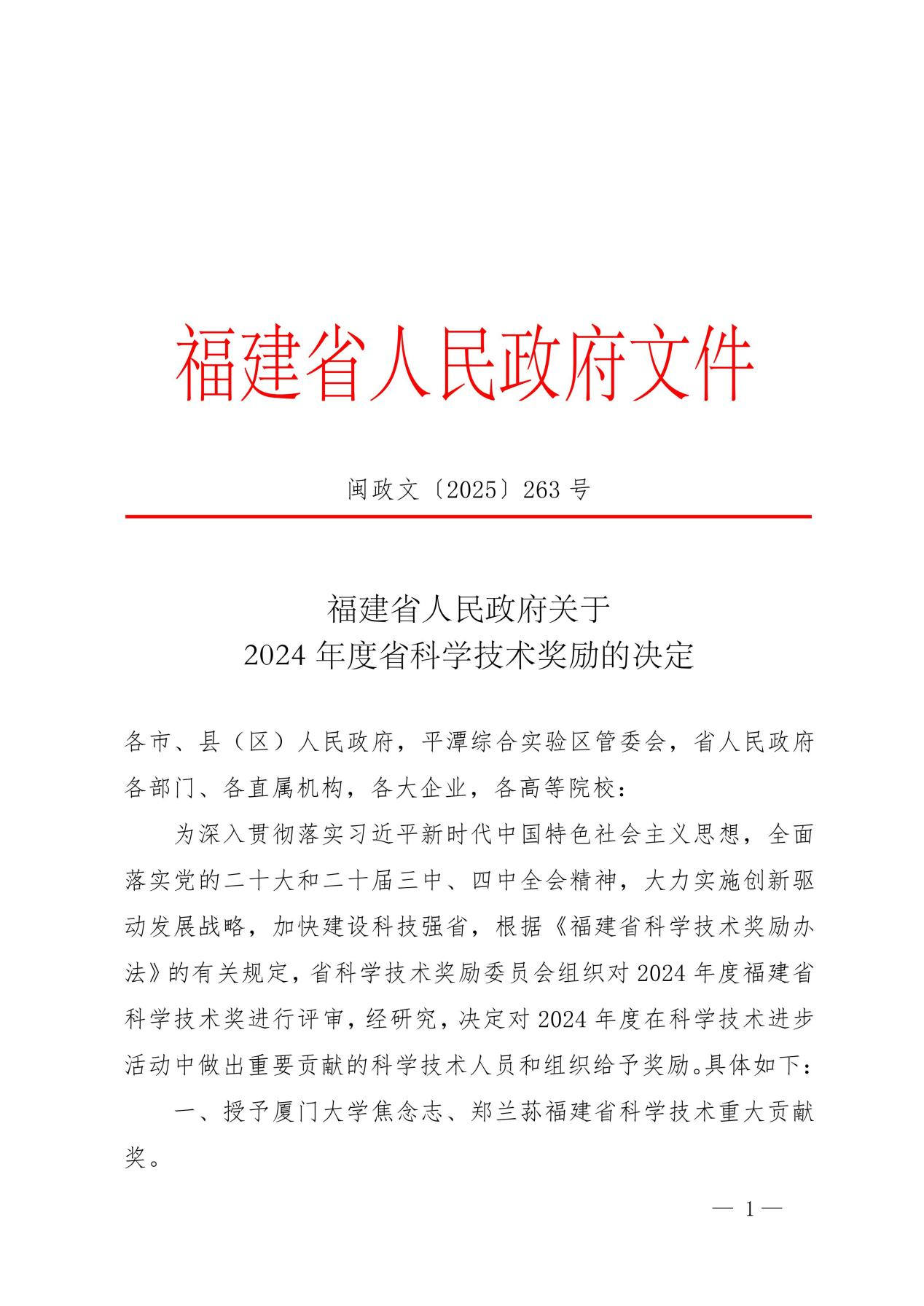 2025年11月,福建省人民政府公布2024年度福建省科学技术奖评审结果名单,福建省运动鞋服面料重点实验室参与的“运动舒适功能性经编多层结构鞋服材料关键技术及产业化”项目荣获福建省技术发明奖三等奖。